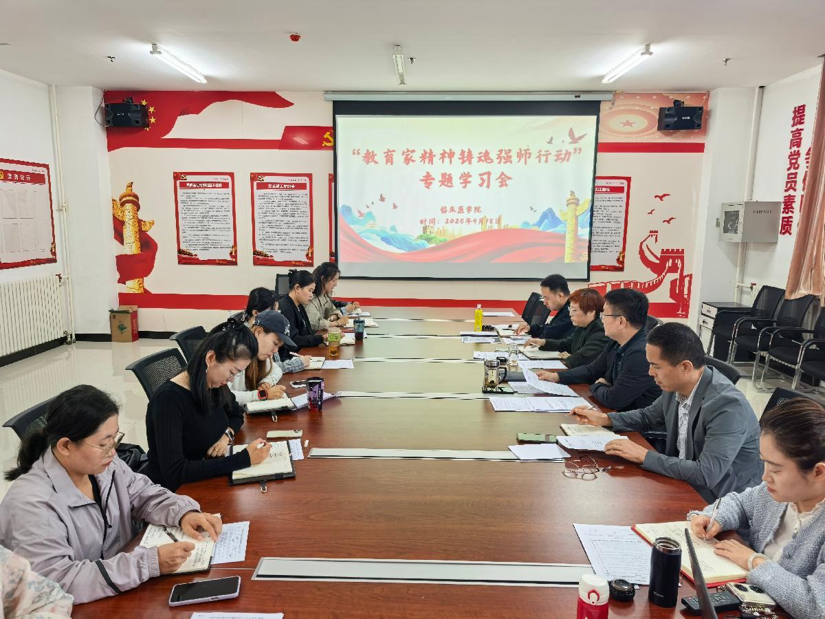 9月18日下午,临床医学院在5205会议室召开“教育家精神铸魂强师行动”专题学习会。学院领导班子及全体教工参加会议。会议由学院党委书记付小卫主持。