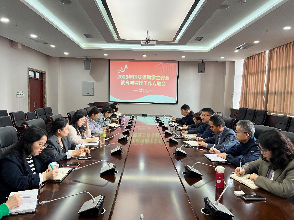 会议传达了2025年国庆假期全省教育系统安全稳定工作调度视频会议精神,按照学校统一部署,围绕政治安全、人身安全、财产安全、网络安全、交通安全、消防安全及心理健康等方面问题,对请销假制度落实、场所隐患排查、重点人员关爱、实习生管理、值班值守等工作作了具体安排。会议还重点强调了“双节”期间锲而不舍落实八项规定精神,持之以恒纠治“四风”,坚决杜绝违规吃请请吃、违规收受财物节礼、大操大办婚丧喜庆事宜等问题。