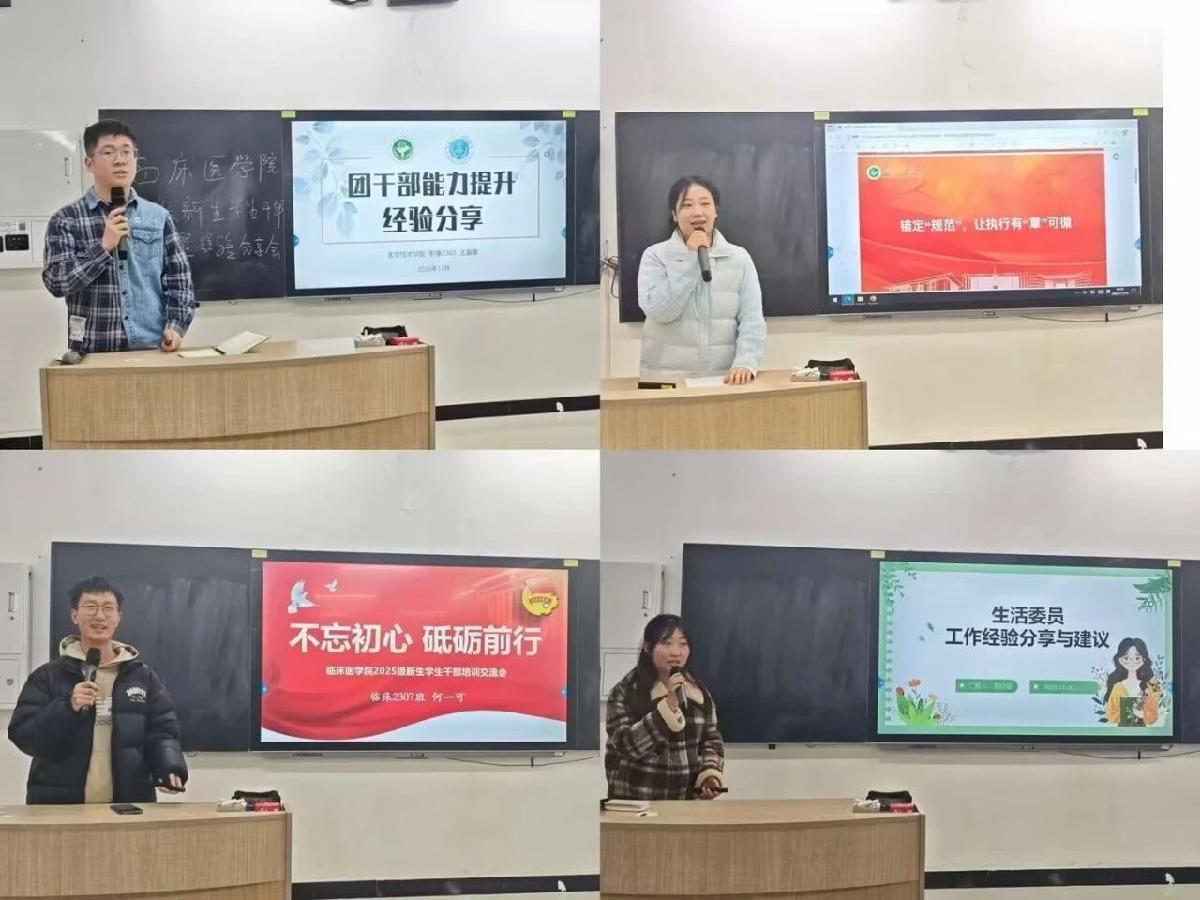 榜样引领,见贤思齐。本次培训特邀中西医结合学院学生会主席、中西医2304班班长张愉、医学技术学院影像2303班团支书王鑫康及我院临床2307班班长何一可、临床2402班生活委员李欣瑶等4名优秀学生干部作经验分享。四位学长学姐立足自身岗位履职经历,以“身边事”讲“真经验”,围绕组织协调、时间管理、班级凝聚力提升、活动策划实施等方面开展交流。他们用鲜活的“工作案例”和切实可行的“解题思路”,既毫无保留地传授了班级管理中的实用方法与技巧,又传递了甘于奉献、勇于担当的责任意识和脚踏实地、求真务实的工作作风,为在场学生骨干搭建了互学互鉴、共同提升的交流平台,进一步激发了大家服务同学、争创佳绩的工作热情。
