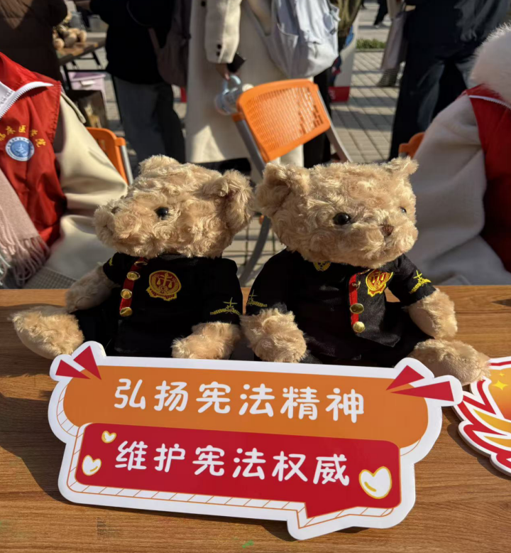 作为本次宪法游园会的压轴环节,该关以“习近平法治思想核心内容背诵”为挑战任务,要求参与者准确、流利地进行现场背诵。成功通关者不仅展现了扎实的理论素养与坚定的法治信仰,还可获得专属“法治小熊”纪念品,寓意守护法治、温暖同行。
