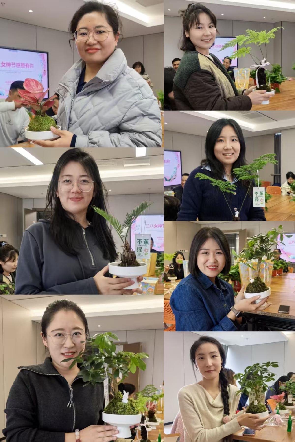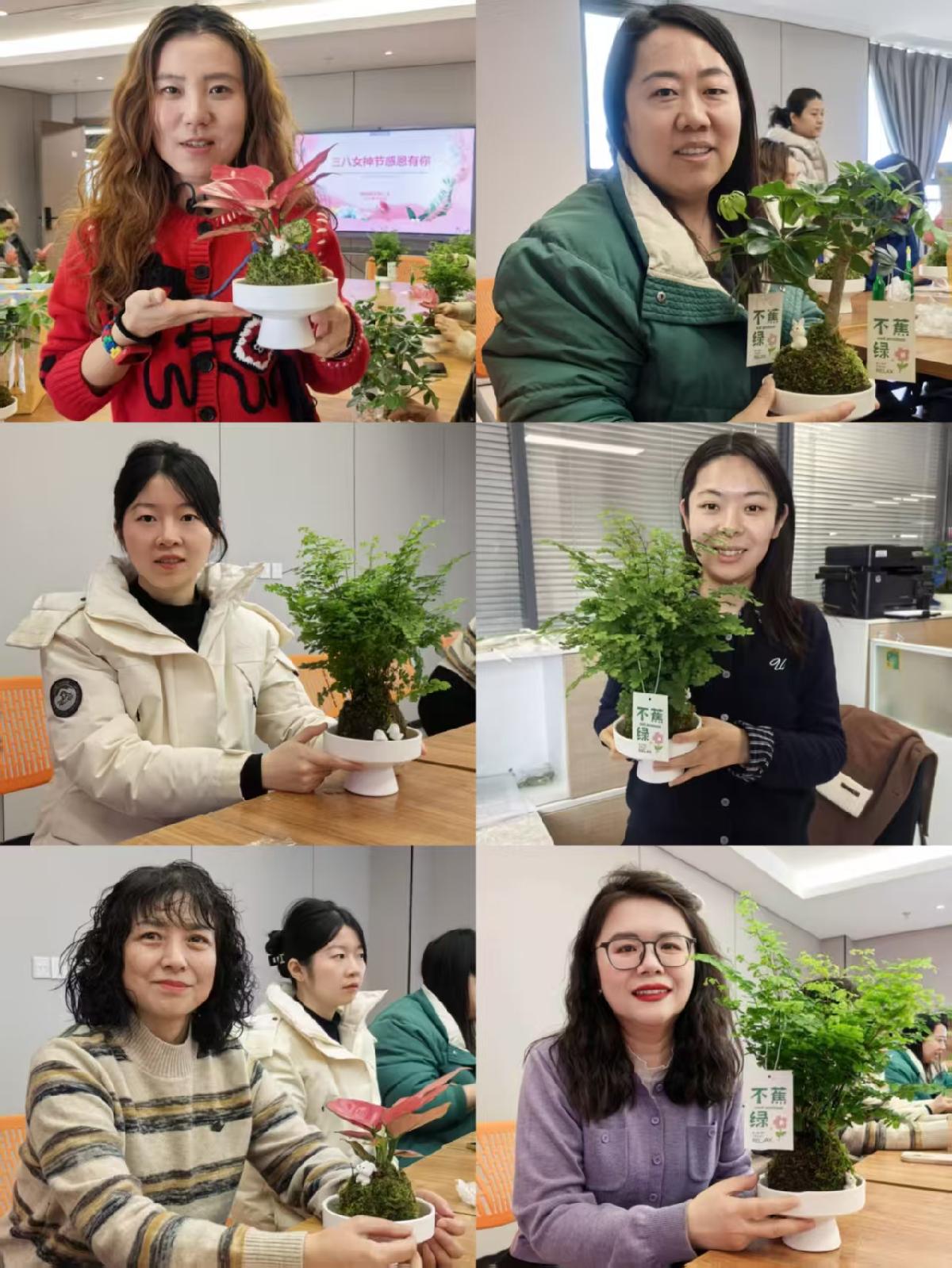 创作结束后,女教职工们将自己的作品摆放到指定区域展示,大家自由观赏、相互点评,分享创作过程中的感悟和对绿植养护的见解,交流节日的喜悦心情。随后,工会组织全体参与人员与自己的绿植作品合影留念,定格下这一温馨美好的节日瞬间。