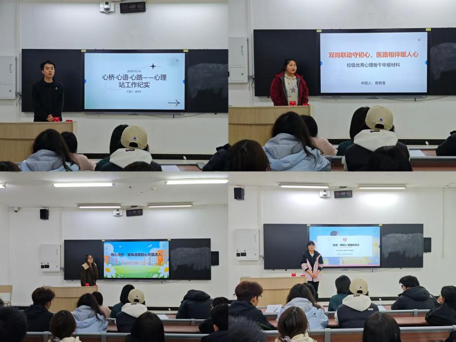 3月18日晚,临床医学院在5207教室举办新学期学生优秀心理骨干评选答辩暨心理委员培训会。学院党委副书记袁武会出席并讲话。南校区各班心理委员及部分学生代表参加会议。会议由负责心理工作专职辅导员徐艺宁主持。