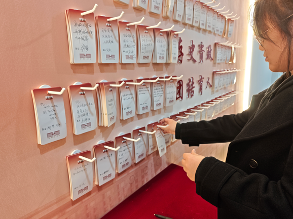 参观过程中,大家全程专注、认真思考,不时交流感悟、分享体会。在互动体验环节,全体人员积极参与馆内特色互动项目,进行主题盖章打卡,于方寸印章间定格政协历史记忆,在趣味互动中深化对协商民主制度的理解。参观最后,大家来到留言墙前,结合自身学习感悟和岗位实际,郑重写下心声与承诺,字里行间饱含着对政协历史的崇敬,以及立足本职本责、勇担时代使命的坚定决心。